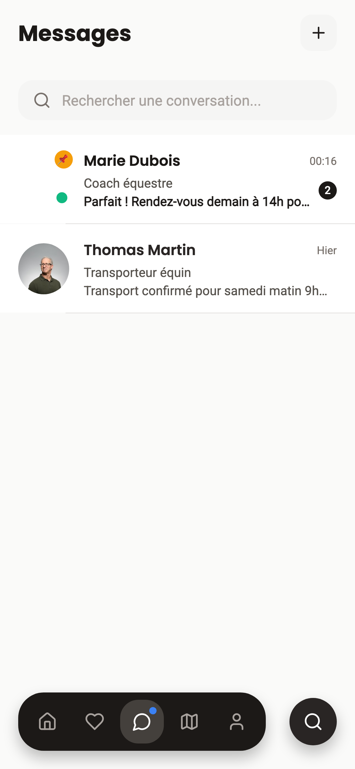 Votre profil apparaît auprès de tous les cavaliers et propriétaires de votre zone.