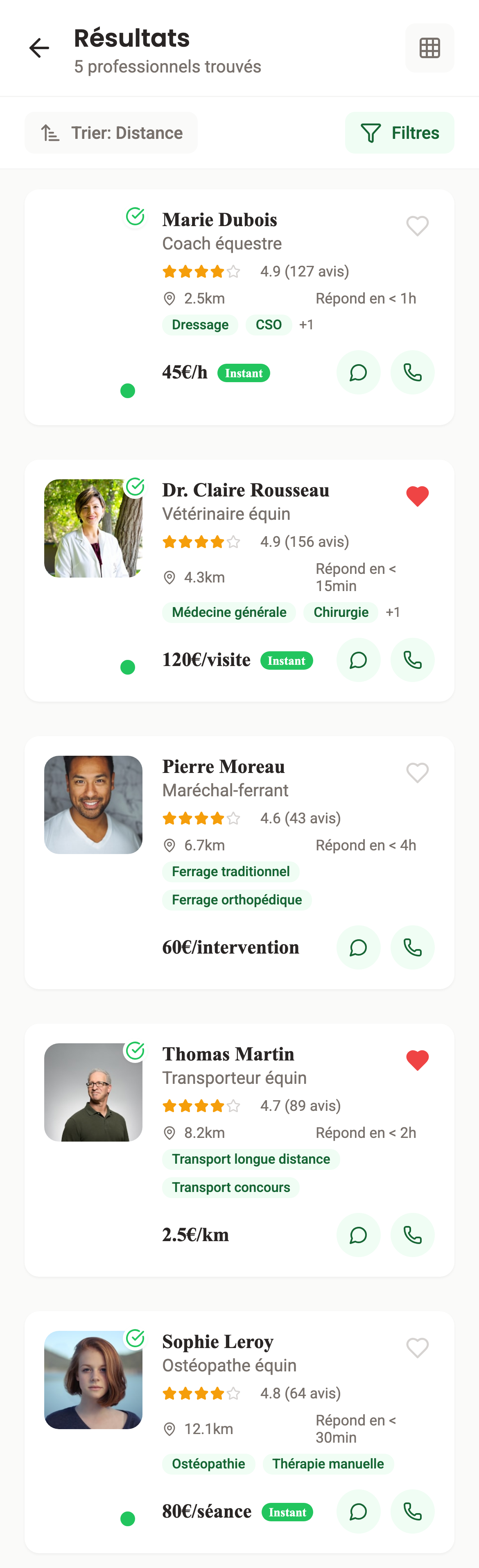 Voyez les temps de réponse moyens de chaque pro. Trouvez ceux qui sont réactifs et disponibles.